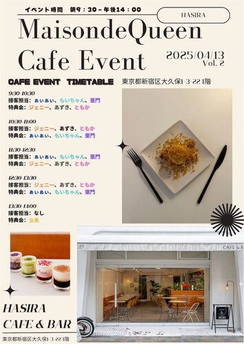 メゾンドクイーンのカフェイベント。 2部から結局最後まで居てしまった。 1ヶ月前ねこあれが加入したものの、見る前に辞めてしまった。This is 地下アイドル 高須賀ともかちゃん初見だけどかわいかったし、星空あずきちゃんもかわいかった。 もいちゃんは相…